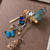 🌸こちらはY様のオーダー品です🌸 流星 ドールサイズの髪飾りを制作いたしました。 ドール向かって右のウィッグへクリップで留めてあげる、若しくはバレッタの様に後ろで留めて頂ける様に制作しております。 お品物は、髪飾りのみです。お人形が写っているお写真は着用例(MDD)となりますので、サイズ感等をご参考ください。(ドール本体や、撮影用に使用している小物類は付属致しませんのでご注意ください) ◆使用素材等◆ 金属、シフォンパーツ、ガラスやタッセル、プラスチック等色々です。難黄変のレジンや、ニカン・丸カン等で各パーツの接着を行っております。 金属・レジンアレルギーの方はご注意ください。 できるだけパーツが外れたりしないよう、ニカンを中心に使用し、マルカン使用部分で、外れる不安がある箇所に関してはレジンにて隙間をふさいでおりますが、華奢なパーツ類も使用しておりますため、優しくお取り扱いいただけますようお願い致します。 金属パーツに関してですが、海外製品も使用しており、なるべく綺麗なものを選んで使用しておりますが、どうしても元々少々のスレや小傷などがあるパーツもございます。お気になされる方はご購入をご遠慮くださいますようお願い致します。 ◆ドール着用時のご注意◆ 必ず、ウィッグの上からのご使用をお願い致します。金属パーツを使用しています為、お顔にパーツが当たらない様装着してあげて下さい。 色移りは湿度や条件によって変わってきますので、長時間の装着したまま・・は推奨できません。様子をご覧いただきご使用をお願い致します。 (念の為、特にタッセル部分はお顔など本体に直接触れない様ににご使用下さい) 大変すみませんが、色移りや、パーツこすりでのメイクの削れ等での責任は当方では負えませんのでご了承ください。 ◆その他◆ 丁寧に一点・一点手作り致しましたが、手作業です。プロの作品のようなクオリティーはございませんので、ハンドメイドへのご理解をいただき、雰囲気を気に入って下さった方のご購入をお待ちしております。 ◆発送に関しまして◆ 少々お待たせいたしますが、都合により発送まで最大で、一週間程度頂戴しますが、ご了承ください。
