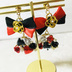 。* ❤︎… …❤︎*。。* ❤︎… …❤︎*。 レジンで加工したトランプ柄とリボンのピアスです˙ᵕ˙⑅ 赤と黒のリボンの中心にお花がついており、金の透かしにトランプ柄と3色の薔薇、フェイクパールで左右少し違うデザインとなっております✧︎ 大きさは2枚目画像、裏面は3枚目画像をご参考ください。 輸送中のピアス部分強度の為、金具キャッチの後ろにシリコンのキャッチを付けて梱包致します。 イヤリング変更・・・+¥100- ゴールドカラーのイヤリングへ変更致します。 ※金具などアレルギー対応しているものではないのでご注意願います┏○)) 素人ハンドメイド品ですので細かい部分に傷などがある場合がございますので気になさる方はご購入をお控えください。 アルコールスプレー後、プチプチで衝撃防水考慮し梱包して送らせていただきます。 入金確認後、発送はなるべく当日か翌日に送れるよう心がけますが遅れてしまう場合ご連絡致します。✧︎・.。*・.。* 。* ❤︎… …❤︎*。。* ❤︎… …❤︎*。