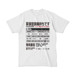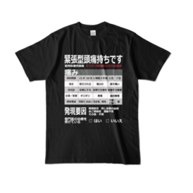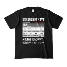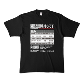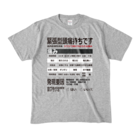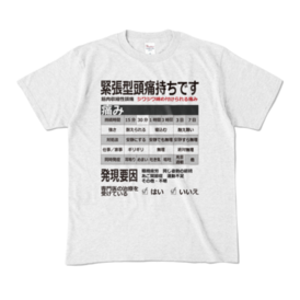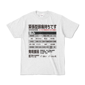 カラーTシャツ - XL - 杢グレー (濃色)「緊張型頭痛の破壊力を知れ!」 地味だが苦しい緊張型頭痛。首周辺の筋肉から来るそれは、スマホ必須の現在、決して他人ごとではありません。その症状と自分の状態を伝えることは、周囲にとっても利益となるでしょう。 缶バッジで、見てほしいところを強くアピールすることもできます。 オフィスの椅子にそっと掛けておく「シャツonチェアー」アピールも、奥ゆかしい大人のパフォーマンスとしてお勧めです。 ※缶バッジは付属しません。 ※この商品はpixivFACTORYで作られた商品です。サンプル画像は完成イメージのため、実物と異なる場合があります。