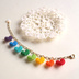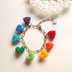 ふっくらとした立体的な形のカラフルなハートモチーフが揺れるブレスレットです。 鮮やかなレインボーカラーで元気が出そうな色合いです♪ ビビットカラーでありながら、シードビーズを編み上げたモチーフがレースのような繊細な雰囲気です。 チェーンのお好きなところにカニカンをお留めいただくことで、長さの調節ができます。 Heart Bouquetの初期の頃から作り続けている虹色ハートです。 少しずつパーツを変えながらご紹介しております。 今回はエンドチャームが雲のようなミルキーホワイトカラーのハートになりました。 カニカンもハート型。。。! チェーンにつながっているすべてのパーツがハートになりました。 ハート尽くしをお楽しみください。 おそろいのネックレスもご用意しております。こちらもぜひご覧ください。 https://heartbouquet.booth.pm/items/3090572 ◇ ◇ ◇ 1点1点手作業で制作しておりますので、大きさ、形状は多少異なります。 繊細な作品ですので、丁寧なお取り扱いをお願いいたします。 サイズ:<モチーフ部分>縦約1.6cm×横約1.7cm <チェーン全長>約19cm(モチーフ部分除く) 材質:ガラス、ナイロン、金属