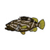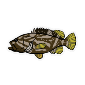 ステッカー - 100 x 100 (mm)日本近海で見られるハタの仲間たちを描いたハタスケッチから「カケハシハタ」のクリアステッカーです。明るい色に茶色の虫食い模様と黄色いヒレがオシャレなお魚です! カケハシハタ推しの方はぜひ!
