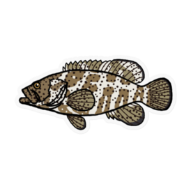 日本近海で見られるハタの仲間たちを描いたハタスケッチから「ヤイトハタ」のクリアステッカーです。大きな体に太い縞模様と黒い斑点がかっこいいお魚です! ヤイトハタ推しの方はぜひ!