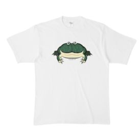 Tシャツ - XL - 白ペットとしても人気のあるおとぼけ顔が特徴の丸っこいバジェットガエルをデフォルメしました! カエル好きな人や、バジェットガエルが好きな人にお勧めの可愛らしい仕上がりになっています。 別名マルメタピオカガエルという不思議な魅力のある癒やし系の人気のカエルですが、なかなかグッズがないので作りました。 体の半分くらいある大きな口と、上目遣いの目が特徴的な可愛らしいデザインにしました。 カエルグッズは多いですが、バジェットガエルのグッズはあまりないので作ってみました。 この商品はpixivFACTORYで作られた商品です。サンプル画像は完成イメージのため、実物と異なる場合があります。