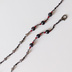 全長65cm程度、ハンドメイドの1点ものです。 天然石ビーズをワイヤーで繋げたマスクチェーン。 モノトーンの石をブラックカラーのワイヤーで繋げました。 ラブラドライトは半透明なグレーの石ですが、角度によって青いシラーがギラリと光ります。 黒いファセットパール(淡水パールに樹脂コーティングしてカットを施したもの)が耳元から下がってピアスのように見えます。赤サンゴをアクセントに効かせました。 ちょっと和の雰囲気もあるチェーンです。 マスクのゴムに両端の留め具をひっかけてご使用ください。 マスクを外したとき、首から下げられるので紛失を防げます。 留め具同士を接続するとネックレスとして、接続ゴムに繋げばグラスコードとしても使える3wayのデザインです。 ●使用石 ・ラブラドライト ・ブラックスピネル ・ファセットパール(淡水パールに樹脂コーティング) ・赤サンゴ 天然石は自然のものなので、クラック・内包物・色むらなどありますが、それも素材の特徴です。ご了承ください。 繊細なチェーンなので引っ掛けなどにはご注意ください。 破損した場合は修理も承ります。(送料のみご負担ください)