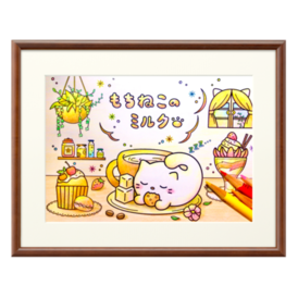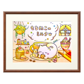 もちねこのミルク塗り絵1 複製画(プリモアート) 額縁ブラウン