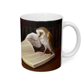 マグカップ - 直径 8 cm / 高さ 9.5 cm百科事典を調べている片眼鏡のフクロウのマグカップです。 側面にお話が書いてあります。 高さ:95 mm 直径:80 mm 内径:75 mm 持ち手幅:15 mm 重量:350グラム ※この商品はpixivFACTORYで作られた商品です。サンプル画像は完成イメージのため、実物と異なる場合があります。