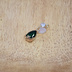 ジルコニアのついたマスククリップパーツに、深緑色の雫型のストーンを添えて、小さなチャームをお仕立てしてみました。 キラキラと光を反射する二つのガラスストーンが大変美しい仕上がりになったかと思います。 よく見ていただくと深緑色にゴールドのお花の模様をしたフレームが映え、愛らしいお品物となっております。 大変小ぶりな仕上がりなので、お洋服などを選ばずご着用いただけるのもポイントです。 また、金具部分はU字型のクリップ状になっているので、お品物を挟める場所であればマスク以外にも幅広くご利用いただけるかと思います! 秋らしい色合いですので、ピアスやお洋服のお色と合わせてご利用いただくのも素敵かと思います。 お揃いの耳飾りもご用意がございます。合わせてご覧ください。 硝子どろっぷの耳飾り 深緑 https://yuu3004.booth.pm/items/3513606 長さ(モチーフ部分):約2㎝ 緑色のチャームはガラススト―ン、金属部分は材質不明です。 クリップ部分の材質は真鍮、裏にシリコンゴムの滑り止めがついたものを使用しております。 U字型に成形されたパーツを使用しておりますので、無理な曲げ伸ばしは避けていただきますよう、お願いいたします。 (破損してしまう恐れがございます) ※minneでも販売中のため、タイミングによっては品切れとなる場合がございますが、予めご了承ください。