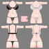 イメリス用の衣装、ランジェリー(黒、白)です。 レースのきれいなランジェリーを作りました。 ベビードールに合わせて制作したガーターベルト、ストッキングとも合わせやすいです。 https://wakamaru.booth.pm/items/3223704 ※PB版でも動作確認できました。 ※AvatarToolsはAvatarDynamics 対応版を使用してください。 ※今回はBreast_bigのシェイプキーにのみ対応しています。 パッケージに含まれる衣装 ・ブラジャー ・ショーツ(Tバック) イメリスは、STUDIO JINGO、ジンゴ様が制作されたモデルです。 https://jingo1016.booth.pm/items/3040745 衣装を使用する際は、イメリスの利用規約を守ってお使いください。 ※パッケージにアバターや素体のデータは付属しません。 Unityで設定する際、Unity2019.4.31f1を使用しています。 パッケージも同バージョンを使用して制作しました。 ■設定手順について■ 1.イメリスの導入 2.衣装のパッケージをインポート 3.着せ替え設定をしてアップロード ■メッシュとポリゴン数について■ ・ブラジャー △4804ポリゴン ・ショーツ △2400ポリゴン 合計 △7204ポリゴン ■テクスチャについて■ 全体で1枚のテクスチャにまとめています。解像度は2kです。 色は黒、白の2色を同梱しています。 ストラップの金属もしくはプラスチックの部分をmatcapで表現できるようにしています。 ■マテリアルについて■ ランジェリー全体で1個、matcap部分で1個使用しています。 ■Prefabについて■ マテリアル設定とBoundsの設定をしたPrefabを同梱しています。 AnchorOverrideの設定は着せ替え設定のあとで行ってください。 ■着せ替えについて■ 私が着せ替えをする際にお借りしたツールは、黒鳥様のAvatarToolsです。 Unity上でボーンが結合できます。便利です。 https://kurotori.booth.pm/items/1564788 ■PhysBonesについて■ 胸、お尻に対応しています。 AvatarToolsで結合した場合、特に何も設定を変えずに揺らせます。 ■シェーダーについて■ UnityChanToonShaderを使用しています。 ■シェイプキーについて■ Breast_bigのシェイプキーに対応しています。 アニメーション設定は同梱していません。BlendeShapesをお好みの値に設定してください。 ■素体のシェイプキーについて■ Imeris_bodyのシェイプキーはPrefabのままだと一部合わない部分があります。 Waist_corset:0に設定してください。 Shrink_Shoulder:0に設定してください。 Breast_Big:0~100に設定してください。 ※アップロード直後、Avatar3.0の設定を変更していない場合、素体の胸シェイプキーは100になると思います。 アクションメニュー(デスクトップの場合Rキー)から適切な大きさに変更してください。 ■レンダリングについて■ 部屋の写真はUnity HDRPで撮影しています。 色のみ表示している画像はBlenderで撮影しています。 胸のシェイプキーは100で撮影しています。 ※※※ 本モデルのデータの一部、もしくは全部を購入者以外の方が自由に使える状態で再配布することを禁止します。 本モデルの一部を転用、もしくは全部を自身の著作物として配布することを禁止します。 誹謗中傷、違法行為への使用を禁止します。