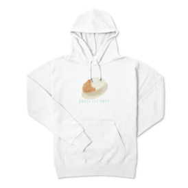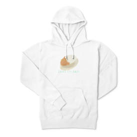 パーカー - XL - ホワイト⚠︎この商品はpixivFACTORYで作られた商品です。サンプル画像は完成イメージのため、実物と異なる場合があります。 カレーが飛んでいるイラストのパーカーです