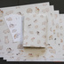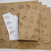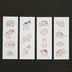 歌川広重が「浮世画譜」第3巻で描いた猫のスケッチを紙製ブックカバーとしおりのセットにしました。 ブックカバーのサイズはA4判。天地左右を折って文庫、新書のカバーとして使うことができます。絵柄の違う5枚入り。 しおりは絵柄の違う4枚入り。 「浮世画譜」は全3巻の画集。渓斎英泉という絵師が描いているのですが、第3巻については歌川広重が担当、人物や動植物など絵手本として描いています。その中でも秀逸なのが猫のスケッチのページ。猫のしぐさが見事に描かれています。 この「浮世画譜」に描かれた猫のスケッチをトレースし、彩色した絵柄を使って5枚のブックカバーを作りました(元絵の色とは違っているところもあります)。 使用した用紙は再生紙(コピー紙よりやや厚く、黄味がかった白)とクラフト紙(ブラウン)の2タイプ。お好みのほうをお選びください。ブックカバーとして使うだけでなく、小物の包装紙、写真撮影の背景紙などアイデア次第でいろいろ活用できます。折らずに発送します。 また、しおりも同じく「浮世画譜」に描かれた猫のスケッチを素材に4枚作りました。 どちらもカラー印刷です。 ※しおりなしの『紙製ブックカバー 広重「浮世画譜」猫(カラー)』も出品しています。 【素材】 再生紙 厚さ0.1mm クラフト紙 厚さ0.11mm しおり 厚紙用紙(マット紙) 【サイズ】 A4判(幅210×高さ297mm)×5枚 しおり 幅45×高さ126mm 【購入の際の注意点】 写真と実物では多少色味が異なる場合があります。 レーザープリンタを使って市販の用紙に印刷し、カットしているので、精密さに欠けるところがあります。あらかじめご了承ください。