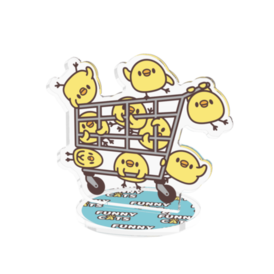 アクリルフィギュア - 70x70mmLINEスタンプやiMessageステッカーで配信中の「にゃんこスタンプ / にゃんこステッカー」から、ショッピングカートで遊ぶヒヨコ達が登場! ※この商品はpixivFACTORYで作られた商品です。サンプル画像は完成イメージのため、実物と異なる場合があります。