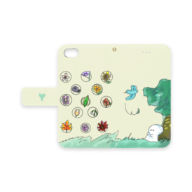 手帳型iPhoneケース - iPhone 8 / 7 / SE2 - ストラップ穴 ありこの商品はpixivFACTORYで作られた商品です。サンプル画像は完成イメージのため、実物と異なる場合があります。 おもちちゃんとお花たちのストラップありの手帳型 iPhoneケースです