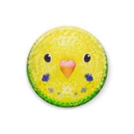 セキセイインコ、オパーリン、メス【インコの缶バッチ】