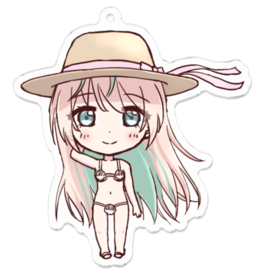 アクリルキーホルダー(コーティング) - 70 x 70 (mm)イラスト🎨FL ふれっと先生による、 【麦わら貝殻ビキニ】ありさちー デフォルメ調なのでセンシティブではないです!こら!そこ!静かになさい! 春夏秋冬、水着ありさちーを楽しめます👙 この商品はpixivFACTORYで作られた商品です。サンプル画像は完成イメージのため、実物と異なる場合があります。