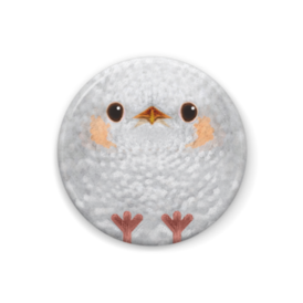 白いヒヨドリ、白変種【まるい鳥の缶バッチ】