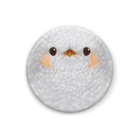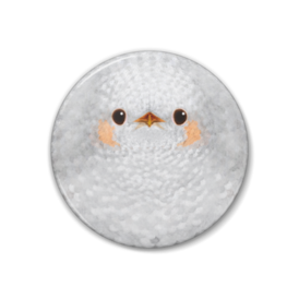 白いヒヨドリ、白変種【まるい鳥の缶バッチ】