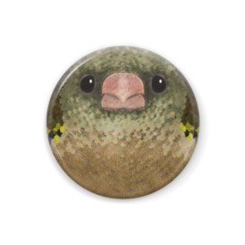 カワラヒワ、メス【野鳥の正面の缶バッチ】