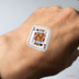トランプの絵柄の転写タトゥーシールです。 用紙を2種類用意しました。透明タイプのものは、画面上、白地に見える部分は実際には透明になります。白地タイプのものは、画面上、白地に見える部分は実際に白になります。 貼り付けたときには、写真とは左右反転します。 トランプのクラブ、ダイヤ、ハート、スペードそれぞれA、J、Q、Kの計16枚を収録しました。 全16点。 絵柄のサイズ 幅20×高さ27mm。 水で湿らせて貼り付けるだけなので簡単。はがすこともすぐできます。 透明タイプの用紙の場合、画面上、絵柄の白い部分、白地に見える部分は貼り付けると透明になります(写真2)。 白地タイプの用紙の場合、画面上、絵柄の白い部分、白地に見える部分は貼り付けると白になります(写真3)。絵柄の余白を少しだけ残すようていねいに切り取る必要があります。 タトゥーシールとして肌につける以外にも、プラスチックや金属など表面がなめらかなものに貼り付けられます。 【素材】 市販の転写シール 透明タイプ 【サイズ】 幅100×高さ148mm(はがきサイズ) 【購入の際の注意点】 表面の粗いものにはきれいに転写できません。 水を使って転写させるため、紙など水に弱いものには転写できません。 肌に転写した場合は一日を目安にはがしてください。 シートは湿気を吸いやすい性質があるので、なるべく早めにお使いください。