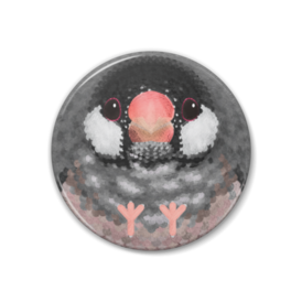 桜文鳥、メス【まるい鳥の缶バッチ】