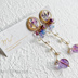 原神 稲妻 雷電将軍・八重神子・宵宮・珊瑚宮心海をイメージしたイヤリング・ピアスです。 ・雷電将軍 小花を封入したカボションには小さな蝶をのせています。ジルコニア使用 ・八重神子 元素爆発の妖しげな雰囲気をイメージしました。 ・宵宮 宵宮のカラーのフラワーパーツに花火のようなチャームを合わせています。 ・珊瑚宮心海1 貝のような形のカボションに様々なお花を封入しています。 グラデーションドロップを使用 ・珊瑚宮心海2 カボションにはシェルチャームをのせています。 大粒のスワロフスキーを使用