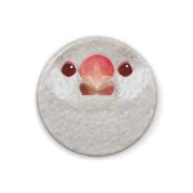 文鳥、イノ、オス【まるい鳥の正面の缶バッチ】