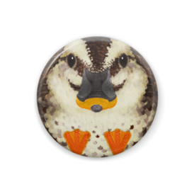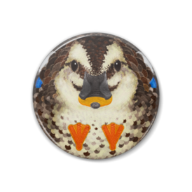 カルガモ、オス【まるい鳥の缶バッチ】留鳥