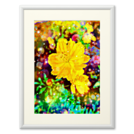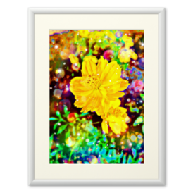 a-716 華 漆黒の宙に咲く黄金色の花 flower. Golden flowers blooming in the jet-black air プリモアート(複製画) ☆応援企画商品☆