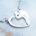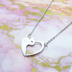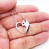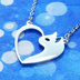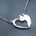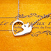ステンレス製シルバーカラーの猫とハートを組合せた可愛いモチーフのネックレス オープンハートネックレス