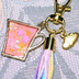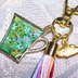 明るく華やかな色合いです。 バッグチャームやキーホルダー等、バッグのみならず好きな場所に使って下さい。軽い仕上がりです。 千代紙を封入したカップのレジンチャームの付いた、可愛いチャームです。 キラキラの封入パーツやネイルシールなどを使って、華やかに仕上げました。裏表色違いです。 タッセルもお手製で、綿糸がメインの長めのカラフルな仕上がりになっています。 同じには作れませんので、各1点限りとなります。 気になる方はお早目の御購入を検討願います。 ●共通サイズ● ナスカン:全長38mm フック内径7mm タッセル径:6mm チャーム:上辺23mm 下辺20mm 高さ29mm 雲パーツ横幅14mm ●タッセル長さ(カン含まず)● 黒:10.1cm 黄:10.5cm 桃:10.5cm 緑:10.6cm 楓:10cm ピンク:10.6cm