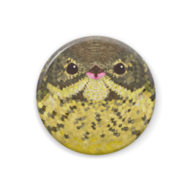 アオジ、メス【まるい鳥の正面の缶バッチ】