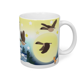 マグカップ - 直径 8 cm / 高さ 9.5 cmうちと実家の上を飛んでいくニルスとモルテン、アッカ隊長の群れを描いてみた、ニルスシリーズのマグカップです。 (一応ですが、原作者セルマ・ラーゲルレーヴさんの著作権は切れております) 素材:ストーンウェア 高さ:95 mm、直径:80 mm、内径:75 mm、持ち手幅:15 mm、重量:350グラム この商品はpixivFACTORYで作られた商品です。サンプル画像は完成イメージのため、実物と異なる場合があります。