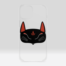 白狐面のクリアiPhoneケース。 白狐面、赤狐面、黒狐面を販売中。