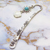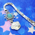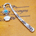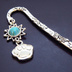 シルバーカラーの肉球とひまわりのターコイズを組合せたブックマーカー 栞 しおり 花柄模様 猫 犬
