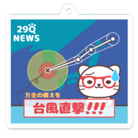 アクリルキーホルダー - 50 x 50 (mm)LINEスタンプやiMessageステッカーの「にゃんこスタンプ / にゃんこステッカー」から、台風直撃を伝えるニャンコが登場! ※この商品はpixivFACTORYで作られた商品です。サンプル画像は完成イメージのため、実物と異なる場合があります。
