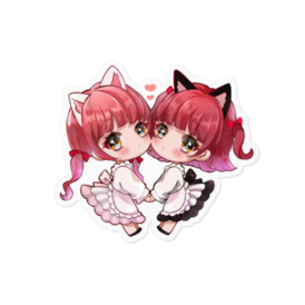 ステッカー - 100 x 100 (mm)大好評だった猫耳メイドちゃんの双子! かわいいサイズのステッカー♡