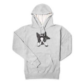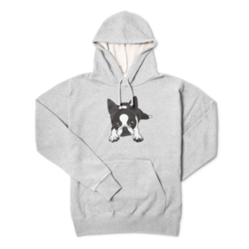 パーカー - XL - 杢グレーこの商品はpixivFACTORYで作られた商品です。サンプル画像は完成イメージのため、実物と異なる場合があります。 名前はコチ。愛称はコっちゃん。1歳の女の子。しゃくれた受け口でいつも下の歯が見えているのが特徴。好き嫌い無く何でもペロリと食べる。噛んだり走ったりしてストレス解消。おもちゃは1時間以内に壊す。全力疾走しないとその日の夜は寝られない。寒がりなのに服を着るのが嫌い。プレゼントにもらったおしゃれな服でもテンション下がる。アメリカ生まれのボステリだからアメカジファッションがとっても似合うのに。リードを付けられるのも嫌い。でも散歩に行くと喜んで歩く。人も犬も大好き。ドッグランで他のワンコに駆け寄っては吠えられる。コチは全く吠え返さない。かわいいっと言ってくれる人がいたら膝の上にのりに行く。まだ子供だから好奇心いっぱい。男の子にジョジョのイギーだと言われたことがあるけど漫画のように必殺技は出せない。ゆるキャラでもブサかわでもない。コチは可愛い乙女。
