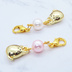 小さなぷっくりフォルムのゴールドカラーの猫モチーフにスワロフスキーパールを組み合わせたコンパクトなチャームです ゴールドカラーとマッチするようスワロフスキーパールの色をクリスタルホワイトとロザリン(淡いピンク)の二種類ご用意致しました 耳周りにつけるとピアスのように見えます マスク以外にもチャームとしても使えますので、キーホルダーの彩りにも、デスクで飾って猫をお散歩させたり、お手持ちのチェーンに通せばネックレスにもなります マスクチャームとしてご利用の場合には紐状のマスクに適しています ※金具などはスチール製ですので、金属アレルギーの方はご注意ください 「スワロフスキー・クリスタル」 スワロフスキーは100年以上もの歴史のあるオーストリアのクリスタルガラス製造会社が生み出すクリスタルガラスです。その独自の製造法とカッティング技術により生み出されるクリスタルガラスは透明度と光の屈折率が高くてとても美しい輝きを放つとされています。当方では一般販売されている素材を利用させていただいています 「スワロフスキー・パール」 クリスタルガラスに本物と同じ輝きのパール加工と、その上にマットカラーのようにも見えるエフェクトを施しています。従来の人工パールにはない真円形で傷のない仕上がりが特徴です 「材質」 猫モチーフ :真鍮:メッキ加工 スワロフスキーパール:クリスタルホワイト・ロザリン(淡いピンク) 金具:スチール 「サイズ」 全長(カニカン含む):約33mm 猫モチーフ:約10×9mm スワロフスキーパール:直径約:6mm 重量:約1.9グラム ※ご使用のモニターの色の違いにより、実際の商品と色味が若干異なる場合がございます。予めご了承ください NN-MC97