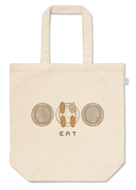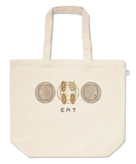 トートバッグ - L - プリント面積中シンプルなパンと犬と皿です。 *この商品はpixivFACTORYで作られた商品です。サンプル画像は完成イメージのため、実物と異なる場合があります。