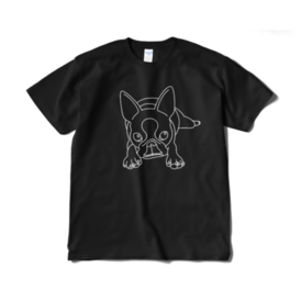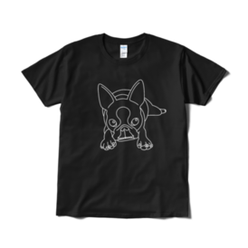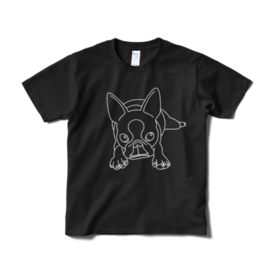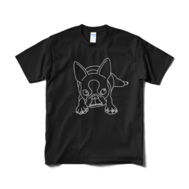 Tシャツ(短納期)-ブラック-ボストンテリアのコチ(白ライン)[v2.7.5k]