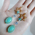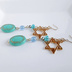15%OFF☆六角形パーツ付き☆アンティーク風ビーズのゆらゆらピアス(ターコイズ)