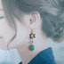 ※1150円から15%OFFの977円に値下げいたしました。 大きめサイズの六角形パーツをメインにターコイズにゴールド色の模様が施されたアンティーク風のアクリルビーズやライトサファイア色のチェコビーズやオーシャンブルー系のガラスビーズなどを合わせた大ぶりサイズのお洒落なピアスとなっております☆ メインのお色は涼しげなターコイズブルー色、ゴールド金具と合わせて爽やかな雰囲気にまとめました☆ アンティーク風ビーズなどを合わせたパーツは途中チェーンを使用して金具に合わせておりますので、お星様パーツの前と後ろ側、どちらにも垂らすことが出来ます。 どちらに垂らすかによって少しだけ雰囲気が変わる、なんちゃって2WAYになっております。その時の気分によってご着用をお楽しみ下さい☆ ※こんな方におすすめ♪ *大切な方へのプレゼントに *大ぶりサイズの作品がお好きな方に *ターコイズ系のお色がお好きな方に *揺れるタイプの作品がお好きな方に ☆アンティーク風アクリルビーズ ターコイズにゴールド模様 約18x13mm ☆チェコビーズ ライトサファイア ラウンド型 6mm玉 ☆ガラスビーズ オーシャンブルー ボタンカット 6mm ☆ガラスビーズ フルコートシルバー ボタンカット 4mm ☆お星様パーツ ゴールド 約20mm程 ☆メタルビーズ ゴールド ☆チェーン ゴールド ☆丸カン ☆Tピン ☆9ピン ☆ピアス用金具(フック式☆ゴールド) 長さは約7.5cmとなっております。(約1cm程のピアス金具を含む)