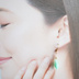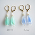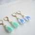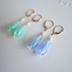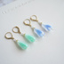 ▫透明な雫型のガラスの中にミルキーカラーの線が入った、爽やかで可愛らしい耳飾りです。
