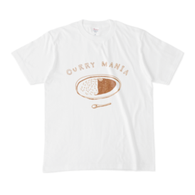 Tシャツ - XL - 白気鋭のクリエイター"NIKORASU GO"によるデザインT。 2013年INDIKETにてアート部門のグランプリ、他、自身のイラストを生かしたデザインワークを展開。特徴は、殆どの作品を仕上げ以外あえてCGを殆ど使わずハンドメイド。(CG作品もありますが、それも元形は全て手書き)ロゴは一文字一文字手作業で配置。またコピーライトの部分にも手を掛けております。自分のクリエーションを気に入ってくれ、応援してくれる少数の方に買っていただき、大切に着ていただければ幸せです タグ:サブカル 食べ物 カレー マニア かわいい ユーモア 子ども