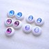 オリジナルデザインの自作アイです。白石を台座にパール紙の虹彩を貼り付け、ひとつひとつ手作業で虹彩部分にのみレジンを数層に渡り厚くコーティングしました。光が入るとキラリとメタリックに輝きます。白目部分はつや消し状態ではっきりと見栄えが良く、少しアニメチックな独自の仕上がりとなっております。 ※フラットタイプのみ、全面にレジンをコーティングしております。アイ単品としての見栄えは良いですが、メタリックな輝きは薄くなります。