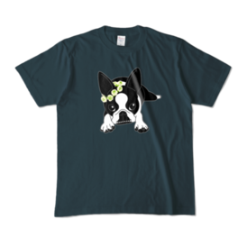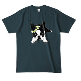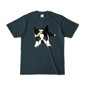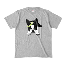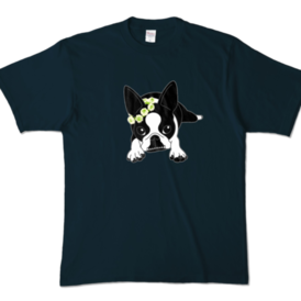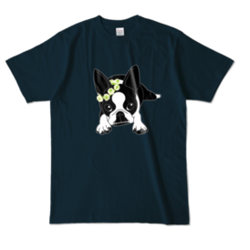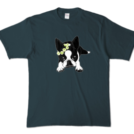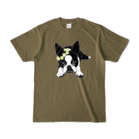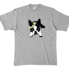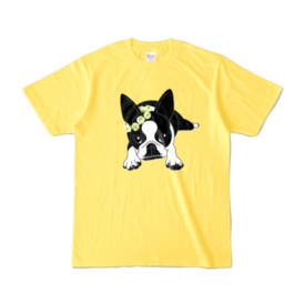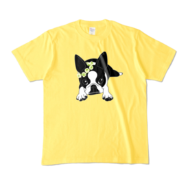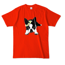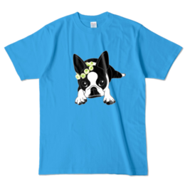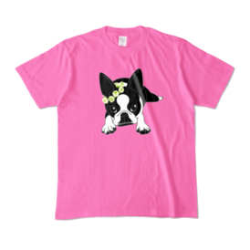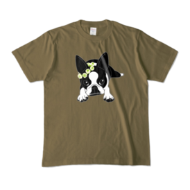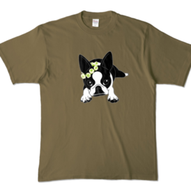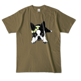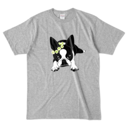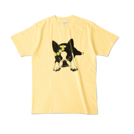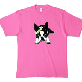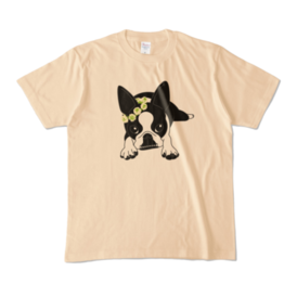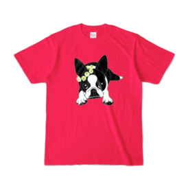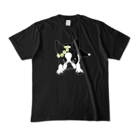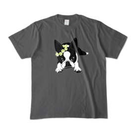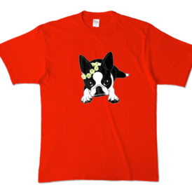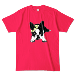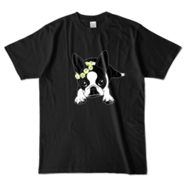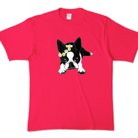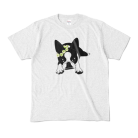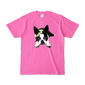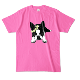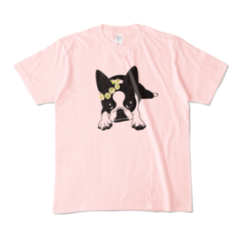 カラーTシャツ-ボストンテリアのコチ(花冠)[v2.7.5k]