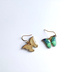 つやつやな蝶々のピアスです。 「虫が苦手なので蝶の羽以外の部分を見たくない!でも色鮮やかな羽の模様やグラデーション、幻想的なイメージは好き!」「気軽に付けていくのに大きすぎるピアスはちょっと使いづらい!」という娘のリクエストから制作しました。 使わない時お家に飾っておいても標本のようで可愛いです♪ ※海外輸入品のパーツのため細かい傷がある場合があります。ご了承いただける方のみご購入いただきますようお願いします。 ピアス金具は金属アレルギーの出にくい医療用ステンレス316Lの素材を使用しています。特徴として、錆びにくい、汚れにくい為、日頃の手入れが面倒な方にも適応します。 イヤリング金具(+100円)は退色しづらくアレルギーの出にくいニッケルフリーメッキのネジバネ式イヤリングを使用しております。 (どちらもアレルギーが出ないことを保証するものではございません。気になる方は購入をお控えいただきますようお願いします。) ・Tシャツなどに合わせても!服装がシンプルでも華やかになります ・もちろんワンピースなどの甘めな服装に合わせても ・プチギフトとして ・色鮮やかなので髪を上げて存在感を出しても、おろしてさりげなく見え隠れしても可愛く、髪の長さが変わっても使いやすいデザイン ・お友達と片方ずつ交換したり、推しカラーをそれぞれの耳に違うカラーを付けてもオシャレ 【サイズ詳細】 約2cm [ピアス] サージカルステンレス316L 18ゲージ(徐々に太くなるデザインの為、一番太い部分で約0.92mmあります) 純金メッキ液を使用した電気メッキ(金メッキ) [イヤリング] 真鍮(ニッケルフリーメッキ) 【ご購入の際は以下の注意点を必ずお読みください。】 ・お届けした商品に破損や不備、商品の不足があった場合、商品到着後3日以内にご連絡ください。 事実確認の上で、至急ご対応をさせていただきます。 ・こちらの不備以外での、お客様の個人的な問題での返品/ご返金はお断りをさせて頂いております。 ・送料が上下する場合がありますが梱包料含め一律価格とし、追加料金やご返金はいたしませんのでご了承くださいませ。 ・お使いの電子端末や閲覧環境により、写真と実物の色味や質感が多少異なって見えることがございます。 ・小さなお子様やペットがいるご家庭は、誤飲などにお気をつけください。 気になる点がございましたら、お気軽にご質問下さい。 在庫の所在地により山口県か岡山県からの発送になります。