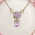ご覧いただきましてありがとうございます。 樹脂粘土製のパーツとスワロフスキー、リボンチャームを使用したネックレスです。 雨が降った後の紫陽花に雨粒がきらりと光る様を思い浮かべながら作成しました。 ハート形のスワロフスキーは光に当たるとキラキラしてきれいですよ。 梅雨~夏のお出掛けにいかがでしょうか? ※注意※ ☆お花のパーツは樹脂粘土でできています。性質上強い力や水濡れに弱いので、やさしいお取り扱いをお願い致します。 ☆定形外郵便でのお届けのみとなります。 【Size】 チェーン:46~51cm(アジャスター:5cm) ネックレストップ: ・ブーケ:約1.4cm×1.4cm ・スワロフスキー(ハート):1cm×1cm ・リボンチャーム:7mm×8mm