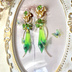 揺らめくグリーンフォレストのリーフバタフライ薔薇水晶 2wayシャンデリアピアス