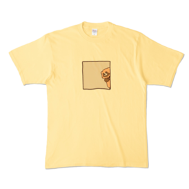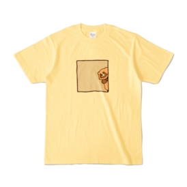 カラーTシャツ - XL - ライトイエロー (淡色)ひょっこりたぬきが覗いてるTシャツ 後ろ姿、見えてますよ