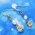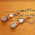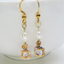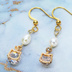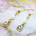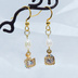 ゴールドカラーの猫フェイスフレームのキュービックジルコニアと淡水パールの大人可愛いピアス サージカルステンレス